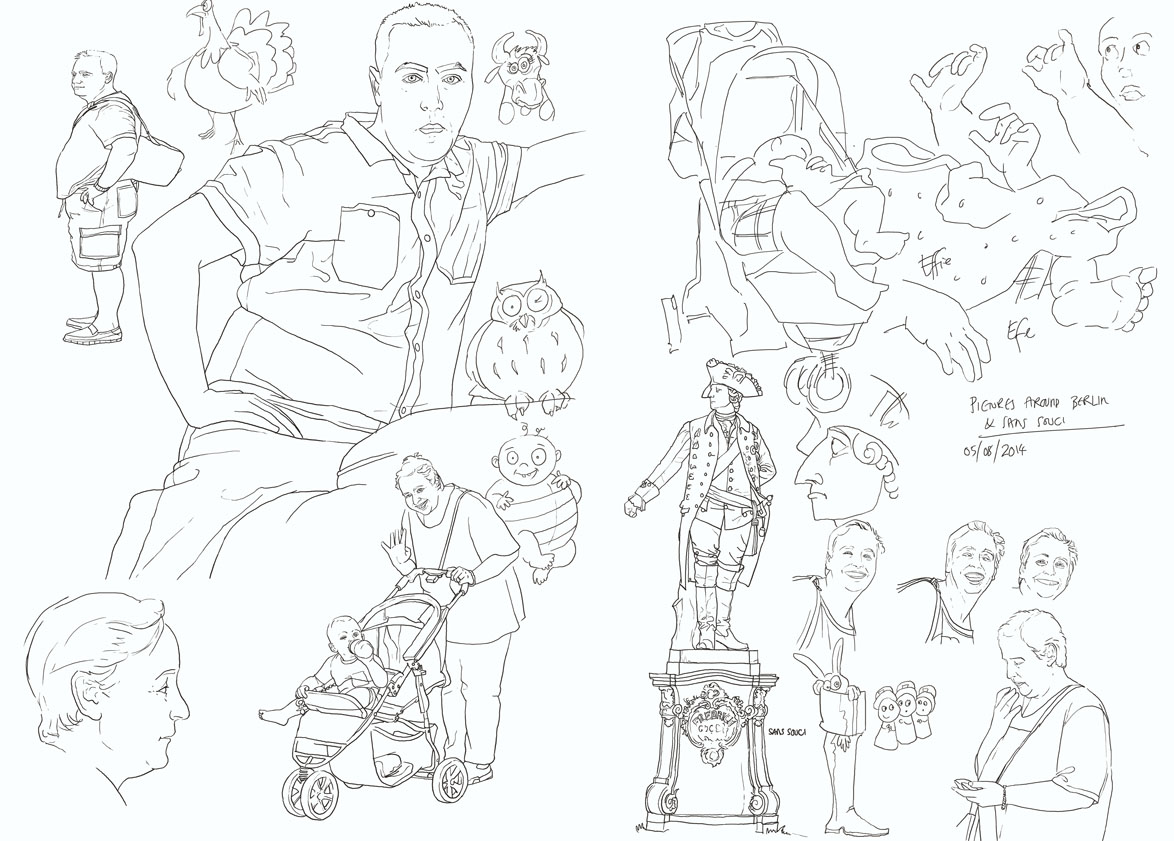 in a slightly obscure shopping centre in the North of Berlin, there is an exhibition of sculpture. The images are all angels and they are quite striking. I did some drawings, (apologies for the frog: it was in the window of a shop selling spectacles) but it also made me think about the subject of “angels” itself. The “hierarchy of angels” is quite confusing and the angelic image -a man with wings, appears in a variety of religions. It can be found for instance in Thangka paintings in Tibetan buddhism and may or may not relate to links between early Buddhism in Tibet and also an exiled gnostic sect that is supposed to have taken its icons with it across the Himalayas.