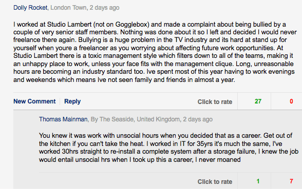 What seems clear to me is that bullying and aggressive workplace behaviour is never an isolated issue whoever is accused- it is generally linked to a general abuse of or struggle for power that seems to envelope the business as a whole and the BBC article confirms this when it makes it clear that there have been numerous complaints certainly to BECTU officials: I am disappointed, therefore, that so little has been done to sort this out.