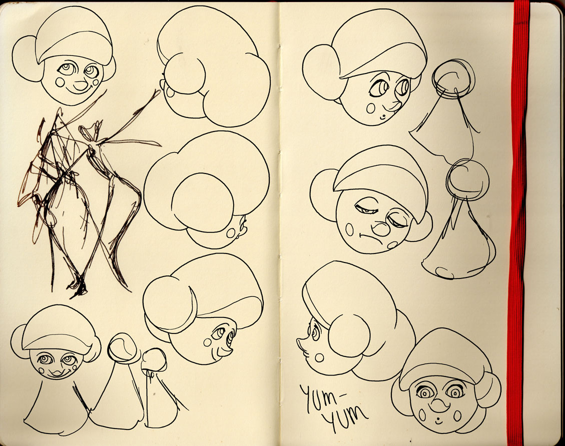 I will post more on this shortly because it is an excellent example of a tune that does a great deal. The three voices (Yum yum, Pitti Sing and Peep Bo) are quite distinctive and the whole thing gallops along at quite a pace. Here are some sketches mostly of Japanese hair-styles…